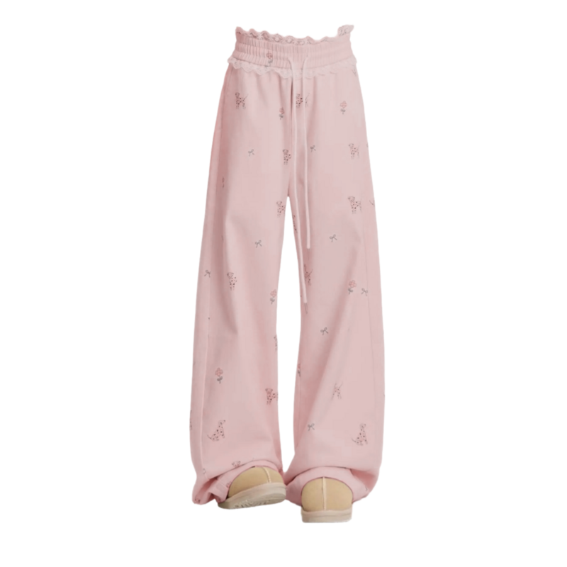 - Printed Dog Pattern Loose-Fit Sweatpants