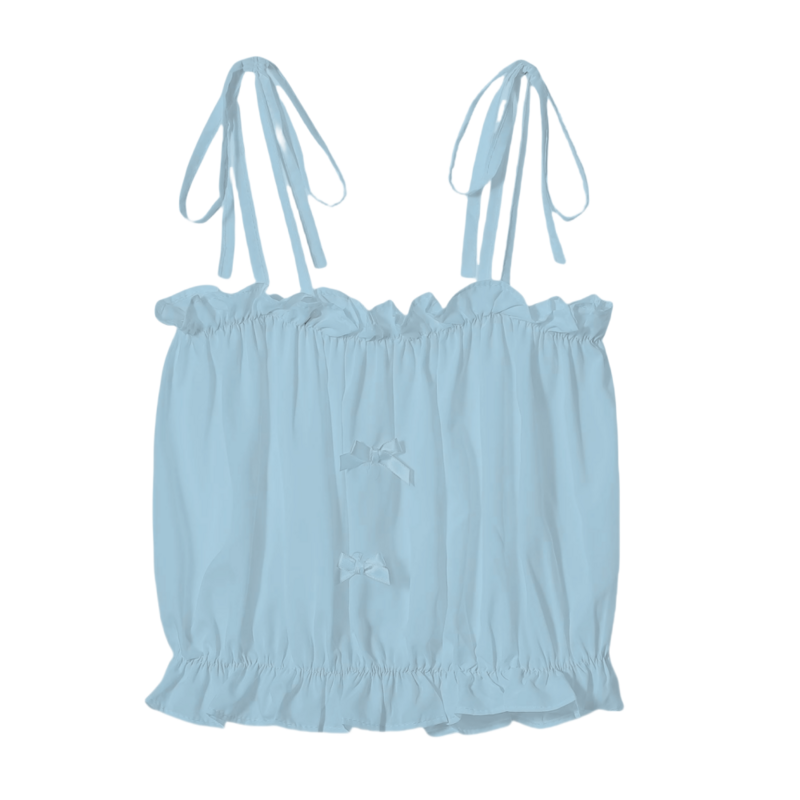 - Crafted from lightweight, breathable fabric, this tank top features charming ruffled edges and a tie-front bow, adding a touch of femininity and elegance to your outfit.